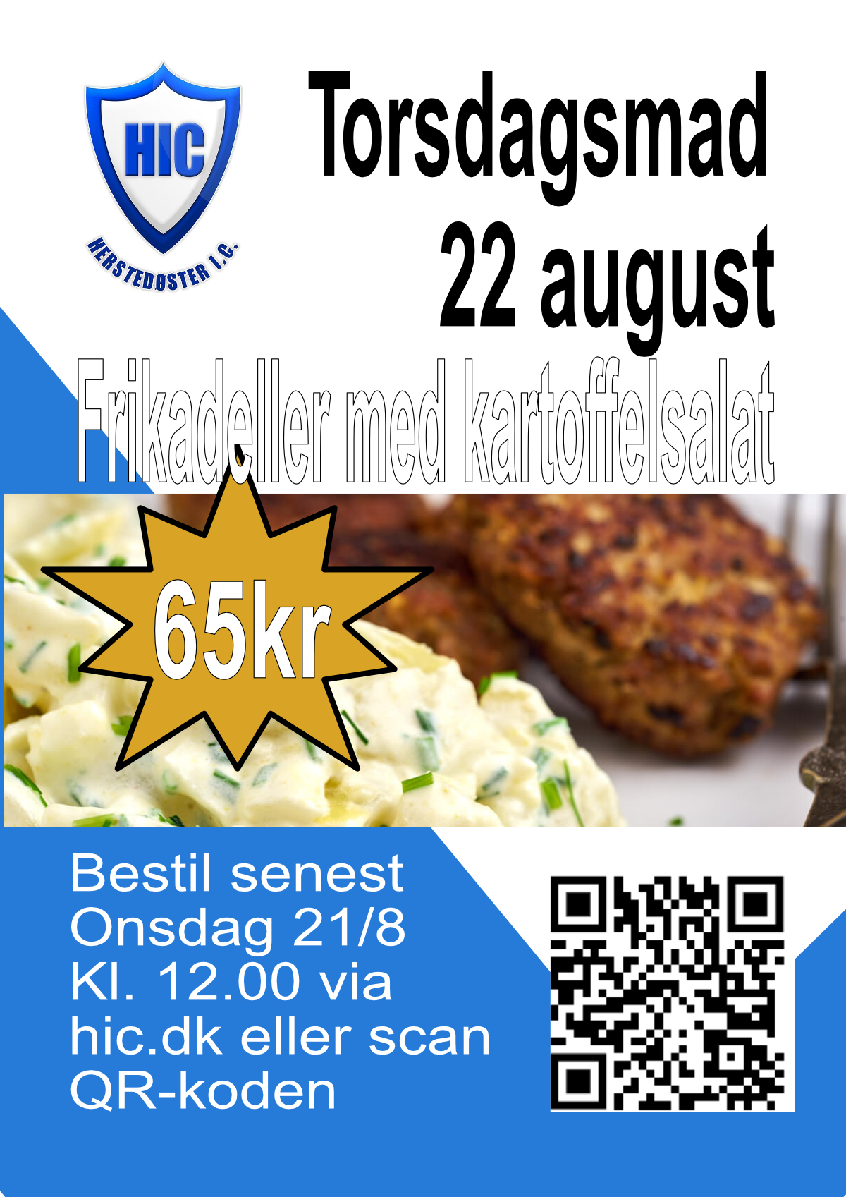 Denne torsdag serveres der frikadeller med kold kartoffelsalat til bare 65 kr