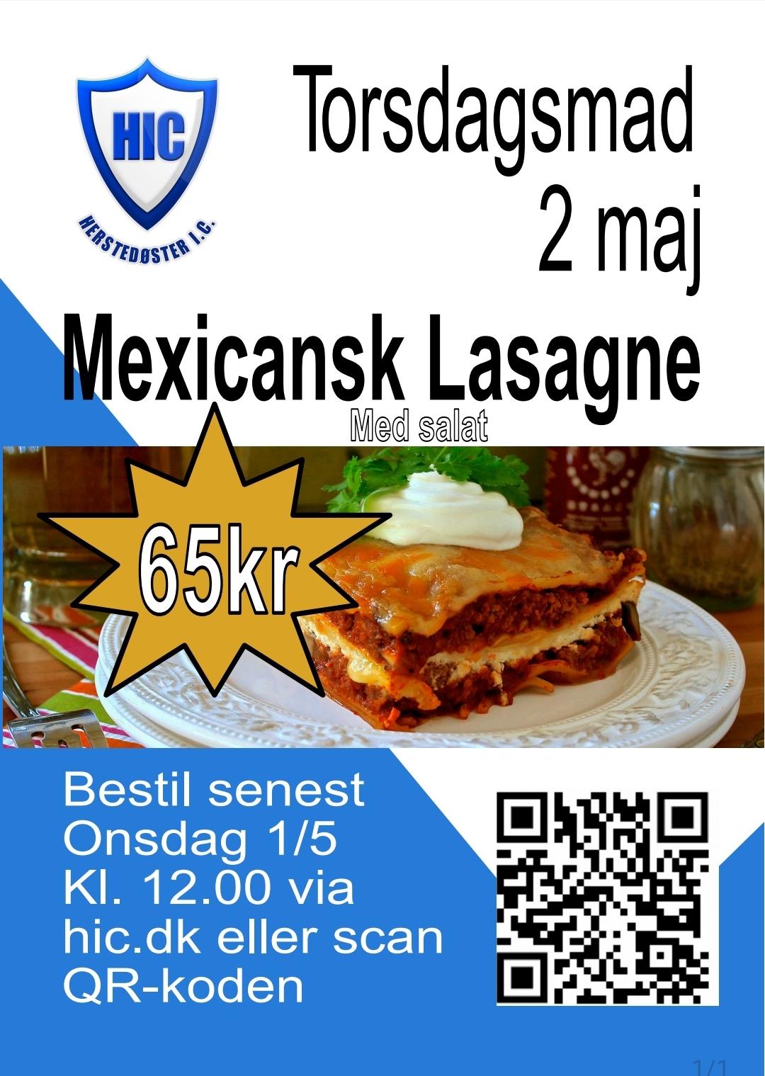 Så skal vi prøve noget nyt i HIC-cafeen - Mexicansk Lasagne er en god blanding af det Tex-Mex og det italienske køkken - Du får endda en lækker salat til.