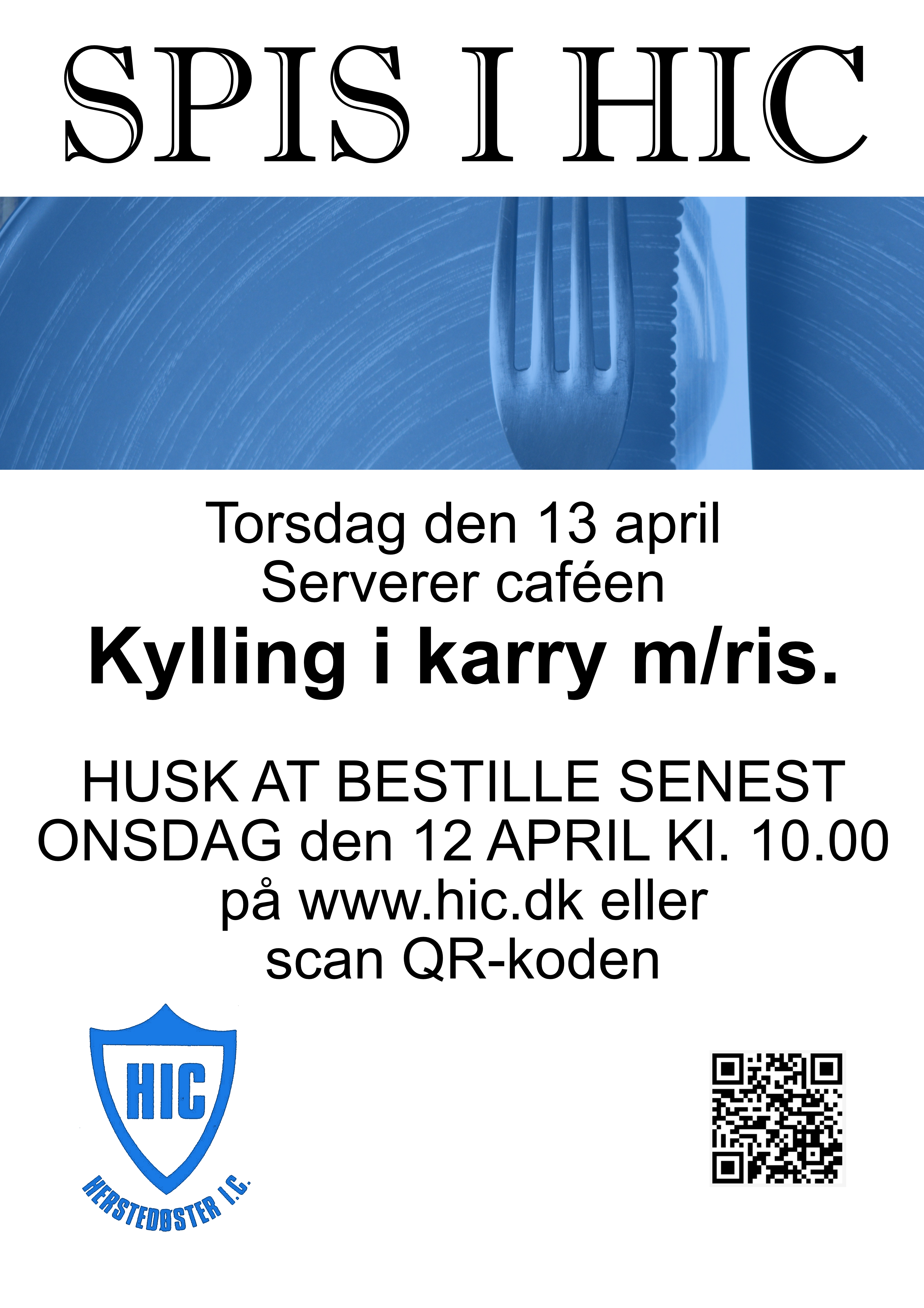 Vi starter torsdag den 13 april med Kylling i Karry - HUSK at bestille senest onsdag den 12 april kl 10.00