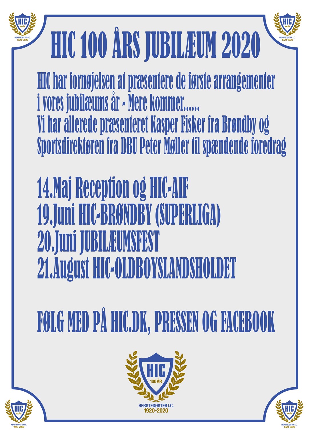 Ved træner og leder arrangement i Herstedøster lagde Søren Burchall en del af jubilæums arrangementerne på bordet - Og jo, vi får travlt. Sæt allerede kryds i kalenderen - Vi skal bl.a bruge en masse hjælpere til Brøndby kampen.
