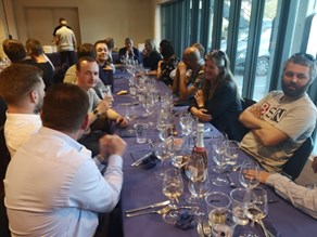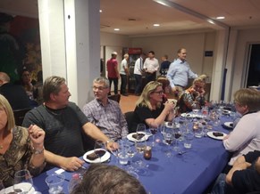 60 sponsorer og andet godtfolk var mødt op til en hyggelig aften i Musikhuset til god mad og alletiders historier. Aftenens højdepunkt indtraf kl 21.30 da vi alle satte os til rette og skulle underholdes af bysbarnet Anders "Anden" Matthesen - Men samtlige af vores gæster var varmet godt op af Jonas fra Kvickly der guidede os igennem diverse vine med den skønneste humor.