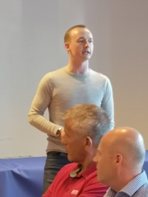 Ved 20-tiden kom cheftræneren på 1ste herresenior Jan Christensen på banen og fortalte om sine 3 første år i HIC - Et klubliv han aldrig havde oplevet før. Hans vinderinstinkt smittede igennem hans tale på 20 minutter - med et lille snert af alvor og masser af humor. Jo vi fik noget for pengene på denne lune forårsaften.