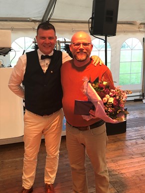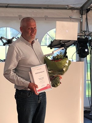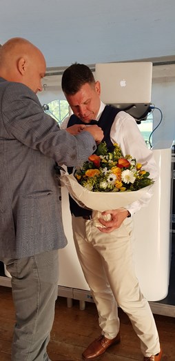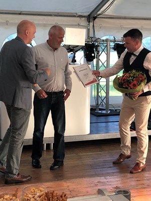 En stolt Trier modtager diplom, nål og blomster