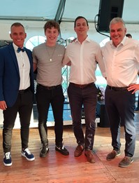 Repræsentanten fra DBU Sjælland fik ordet og begyndte sin præsentation af aftenens første kåring - Tommy Trier Hermansen kom direkte fra lufthavnen og vidste intet om overraskelsen - DBU's æresdiplom for mere end 20 års virke i HIC. En meget velfortjent kåring og bifaldet var også der efter.