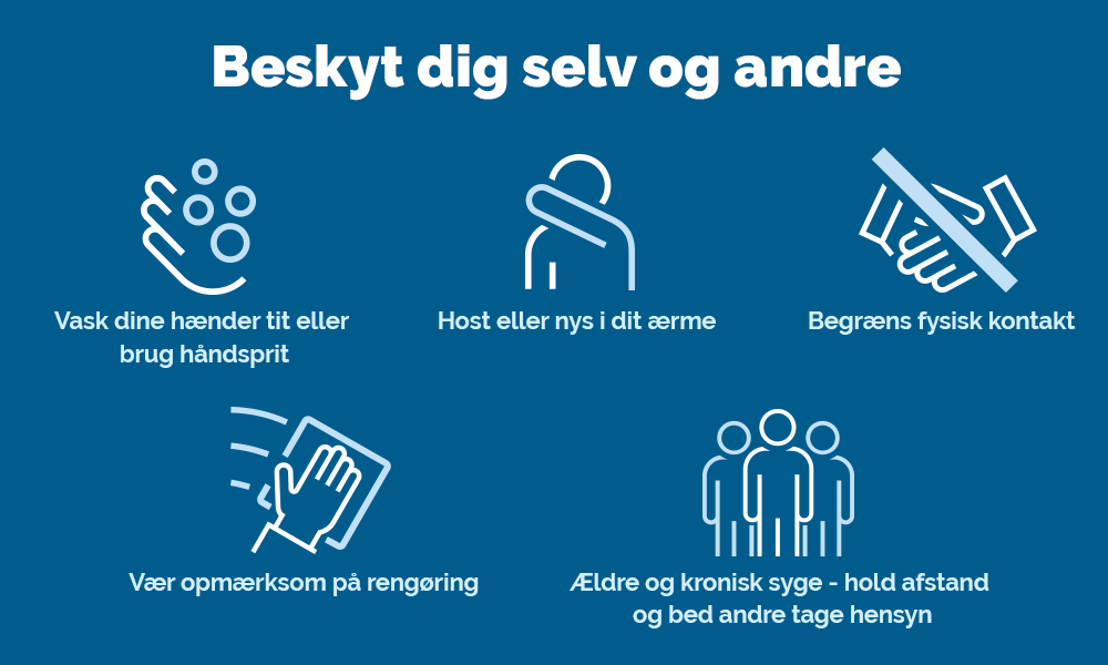 - Hold afstand når du færdes i HIC, og undlad fysisk kontakt som håndtryk mm.